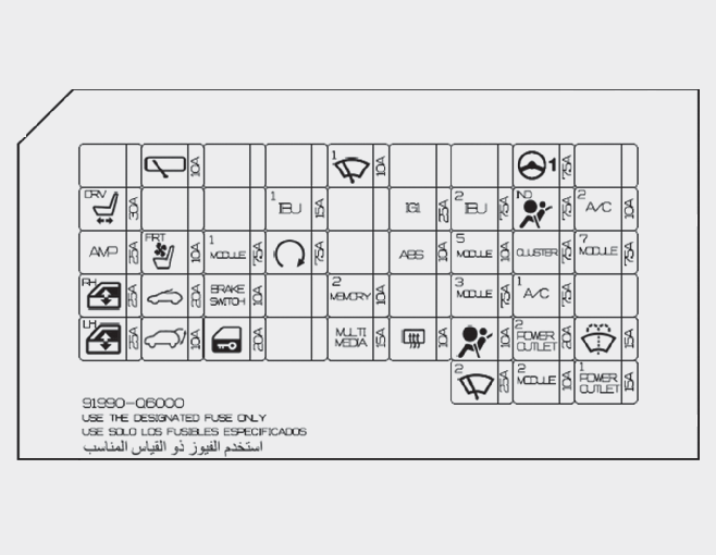 ICU Junction Block (Fuse - Driver Seat Manual Switch, AMP (Amplifier), Power Window Relay RH, Driver Safety Power Window Module, Power Window Relay LH, Driver Safety Power Window Module, Front Air Ventilation Seat Control Module, Sunroof Unit, Tail Gate Relay) |