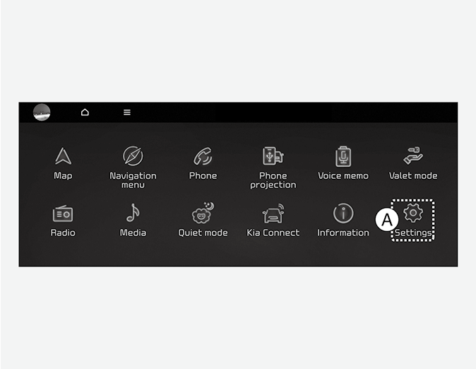 בחר באפשרות ההגדרה (Settings) במסך מערכת המידע והבידור.