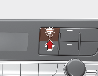 לחץ על לחצן מחמם השמשה הקדמית. המחוון בלחצן מחמם השמשה הקדמית מואר כאשר מחמם השמשה הקדמית פועל.