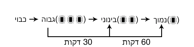 בעקבות כל לחיצה על המתג משתנה הטמפרטורה שנקבעת לפי הסדר הבא: