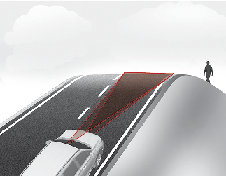 כאשר לרכב מלפנים יש עומס כבד מורחב מאחור, או כאשר לרכב מלפנים יש מרווח קרקע גבוה יותר, הדבר עלול לגרום למצב מסוכן. הקפד להביט קדימה בנסיעה במעלה או במורד, ובמידת הצורך לחץ על דוושת הבלם כדי להאט את מהירות הנסיעה ולשמור על מרחק ביטחון הולם.