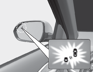 נוריות האזהרה במראות החיצוניות (מראות הצד) ובתצוגה העילית (אם קיימת ברכב) וכן אזהרה קולית יזהירו את הנהג מפני התנגשות. הפונקציה מסייעת באמצעות שליטה על הבלימה כדי למנוע התנגשות ברכב המתקרב מאזור הנקודות המתות. פונקציית הסיוע למניעת התנגשות תופעל תחת התנאים הבאים.