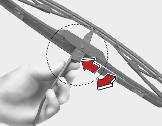 הרם את זרוע המגב וסובב את מכלול להב המגב כדי לחשוף את תפס הנעילה העשוי פלסטיק.
