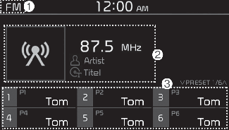 • Manuell finjustering av FM: Finjustera radiofrekvensen manuellt.