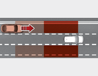Vid byte av körfält genom att upptäcka körfältet framtill och om Kollisionsvarning i döda-vinkeln bedömer att det finns en kollisionsrisk med ett sig närmande fordon i den döda vinkeln, kan det hjälpa till att undvika kollision genom att tillämpa differentialbromsen.