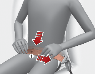 Tryck på knappen (1) i bälteslåset för att lossa säkerhetsbältet. Säkerhetsbältet dras in automatiskt när du har lossat det.