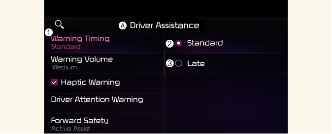 Keď je vozidlo zapnuté, v ponuky Nastavenia vyberte položky Asistent vodiča → Načasovanie výstrahy a pre systém výstrahy pre zvýšenie pozornosti vodiča zmeňte počiatočný čas pre načasovanie výstrahy.