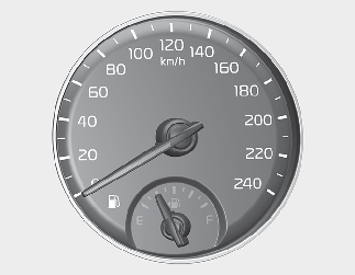On inclines or curves, the fuel gauge pointer may fluctuate or the low fuel warning light may come on earlier than usual due to the movement of fuel in the tank.