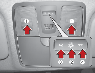 (3): Press this switch to turn the front and rear room lamps on and off.