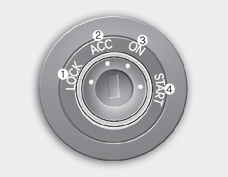 Never turn the ignition switch to LOCK or ACC while the vehicle is moving. This would result in loss of directional control and braking function, which could cause an accident.