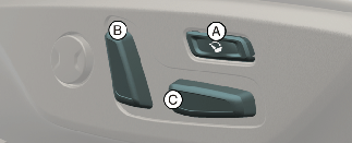 Após a operação estar concluída, esta pode ser ajustada mais usando o interruptor de ajuste (B, C) do banco para obter uma postura mais confortável.
