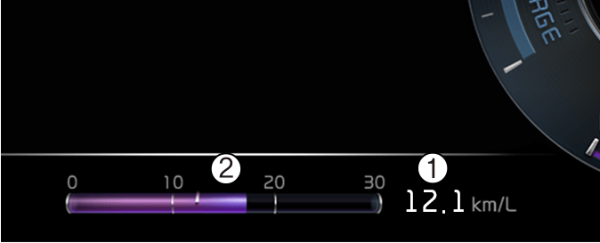 Este modo mostra o consumo de combustível nos últimos segundos quando o veículo circula a mais de 10 km/h (6 mph).