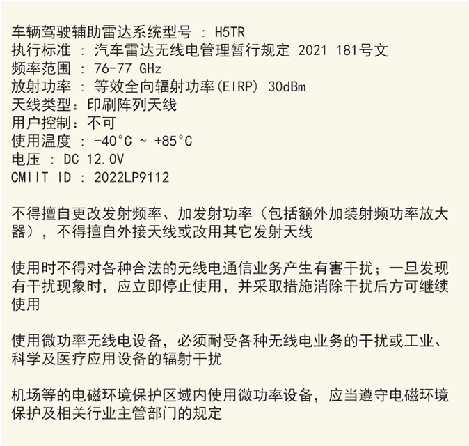 Os componentes de radiofrequência (radar dianteiro) estão em conformidade com: