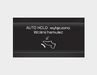 W takich sytuacjach zapala się kontrolka ostrzegawcza hamulca, kolor kontrolki Auto Hold zmienia się z zielonego na biały, a także włącza się sygnał dźwiękowy i wyświetla komunikat informujący o włączeniu elektrycznego hamulca postojowego (EPB). Przed ponownym ruszeniem należy wówczas nacisnąć pedał hamulca, sprawdzić otoczenie pojazdu, a następnie zwolnić ręcznie hamulec postojowy przełącznikiem EPB.