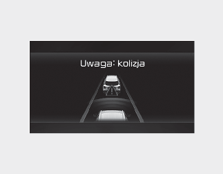 Aby ostrzec kierowcę o kolizji, w zestawie wskaźników pojawia się komunikat ostrzegawczy „Ostrzeżenie o kolizji”, rozlega się ostrzegawczy sygnał dźwiękowy i uruchomiona zostaje wibracja kierownicy (jeśli pojazd wyposażony jest w tę funkcję).