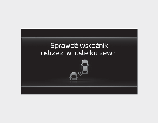 Gdy kontrolka ostrzegawcza w lusterku zewnętrznym działa nieprawidłowo, w zestawie wskaźników pojawia się komunikat ostrzegawczy „Check side view mirror warning light” (Sprawdź kontrolkę ostrzegawczą w lusterku zewnętrznym). Zaleca się przegląd pojazdu u autoryzowanego dealera/partnera serwisowego marki Kia.