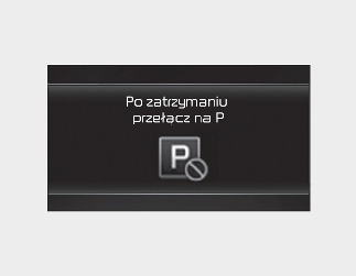 Ten komunikat pojawia się na wyświetlaczu LCD w przypadku zmiany biegu na P (parkowanie) podczas jazdy.
