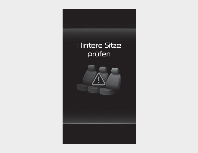 Wenn Sie nach dem Öffnen und Schließen der hinteren Tür und Abschaltung des Motors die Vordertür öffnen, erscheint die Warnmeldung „Hintere Sitze prüfen“ auf dem Kombiinstrument.