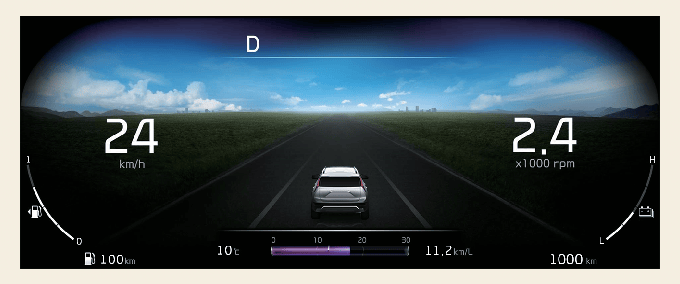 En el caso de la pantalla LCD completa (tipo B), la información se muestra después de obtener información de un proveedor de información meteorológica a través del GPS. Dependiendo de las condiciones de recepción del GPS, la información puede variar del tiempo actual en su área. Si no se recibe información a través del GPS (por ejemplo, no está suscrito al servicio Kia Connect), el tiempo y la hora se mostrarán como "soleado" y "noche" en el tablero.