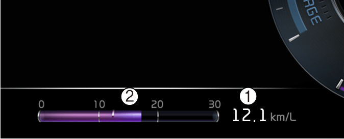 Se visualiza el consumo instantáneo de combustible durante los últimos segundos cuando el vehículo circula aproximadamente a más de 10 km/h (6 mph).