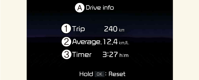 Para reiniciar la información manualmente, mantenga pulsado el botón OK en el volante mientras se muestra la Información después del repostaje.