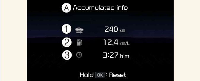 Para reiniciar la información manualmente, mantenga pulsado el botón OK en el volante mientras se muestra la Información acumulada.