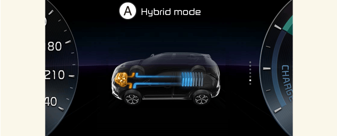 El sistema híbrido informa al conductor acerca de su flujo de energía en varios modos de funcionamiento. Durante la conducción, el flujo de energía actual se especifica en 11 modos.