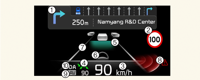 La información de navegación curva a curva y de las señales de la carretera está disponible en función de la región.