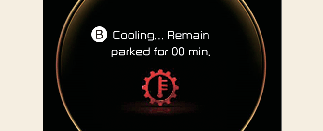 A: ¡Transmisión caliente! Estacione con motor encendido B: Refrigeración... Permanezca estacionado durante 00 min. C: Transmisión enfriada. Reanude la conducción