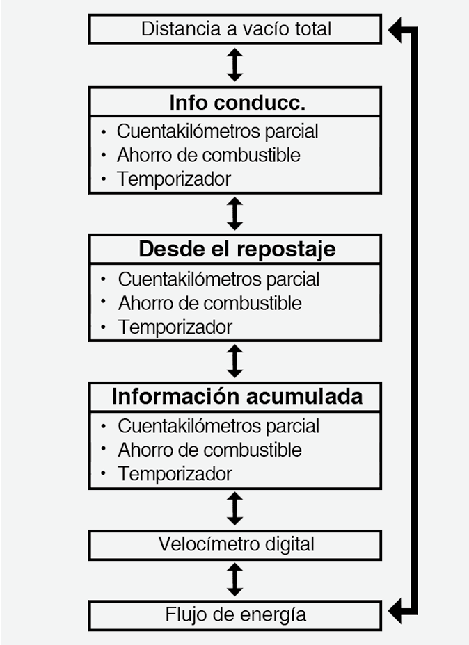 El ordenador de viaje es un sistema de información para el conductor controlado por microordenador que muestra información relacionada con la conducción.
