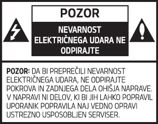 Da bi preprečili nevarnost električnega udara, ne odstranjujte pokrova ali zadnjega dela ohišja te naprave. V ohišju ni delov, ki bi se jih dalo popravljati. Popravila naj vedno opravi ustrezno usposobljen serviser.