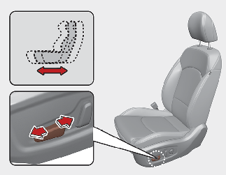 Sprednji sedež je mogoče nastaviti z upravljalnimi stikali, ki se nahajajo na zunanji strani blazine sedeža. Pred vožnjo sedež nastavite v ustrezen položaj, da boste lahko z lahkoto upravljali volan, stopalke in stikala na armaturni plošči.