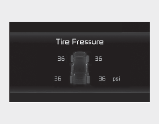 V tem načinu so prikazane informacije, povezane s tlakom v pnevmatikah.