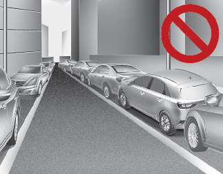 Ko zapuščate parkirno mesto, ki je ozko in ob zidu, funkcija morda ne bo delovala pravilno. Če zapuščate parkirno mesto, ki je podobno zgornjemu na sliki, je voznik tisti, ki mora paziti na ovire.