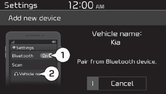 2. Na napravi z brezžično tehnologijo Bluetooth, ki jo želite povezati, aktivirajte tehnologijo Bluetooth, poiščite sistem svojega vozila in ga izberite.