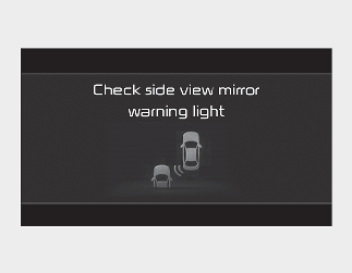 Če opozorilna lučka zunanjega vzvratnega ogledala ne deluje pravilno, se na instrumentni plošči prikaže opozorilo ’Check side view mirror warning light’ (Preverite opozorilno lučko zunanjega vzvratnega ogledala). Priporočamo, da vaše vozilo pregleda pooblaščeni serviser/storitveni partner za vozila Kia.