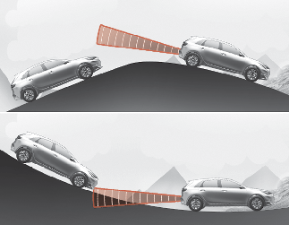 Opozorilnik na trčenje v mrtvem kotu (Blind Spot Collision Warning, BCW) pri vožnji na klancu morda ne bo deloval pravilno. Funkcija morda ne bo zaznala vozila na sosednjem voznem pasu ali lahko napačno zazna tla ali objekt.