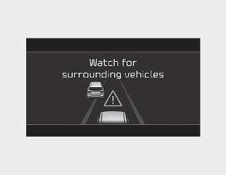 V naslednjem primeru se na sklopu instrumentov prikaže opozorilno sporočilo "Watch for surrounding vehicles" (Pazite na vozila okoli vas) in oglasi se opozorilni zvočni signal, ki bo opozoril voznika na razmere na cesti.