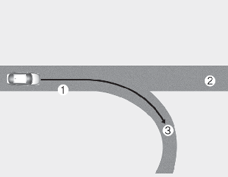 Ko bo pot, po kateri se vozi, prepoznana kot glavna cesta in se bo sledilo glavni cesti namesto z navigacijo nastavljeni poti, bo funkcija Samodejna upočasnitev vožnje po ovinkasti avtocesti znova delala. Glede na razdaljo do krivulje in trenutno hitrost vozila upočasnitev vozila morda ne bo zadostna ali pa bo prehitra.