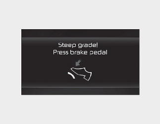 To opozorilno sporočilo se prikaže, ko vozilo pri počasni vožnji po pobočju zazna, da zavorni pedal ni pritisnjen.