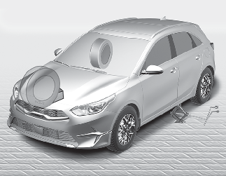 Če želite preprečiti, da bi se vozilo med menjavo pnevmatik premikalo, vedno trdno zategnite parkirno zavoro in blokirajte nasprotno kolo, ki se nahaja diagonalno od kolesa, na katerem menjavate pnevmatiko.