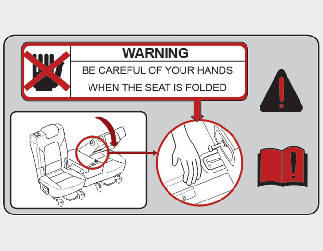 Klappen Sie den Rücksitz nicht um, wenn die Fahrersitzposition nach dem Umklappen des Rücksitzes nicht entsprechend der Körperstatur eingestellt werden kann. Eine starkes Bremsmanöver oder eine Kollision könnten Verletzungen verursachen.