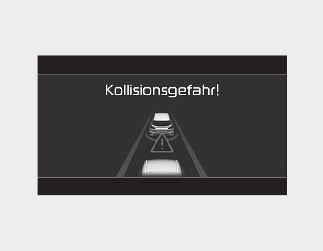 Um den Fahrer vor einer Kollision zu warnen, erscheint eine 'Collision Warning' („Kollisionsgefahr“) auf dem Kombiinstrument, ein Warnton wird ausgegeben und das Lenkrad vibriert.
