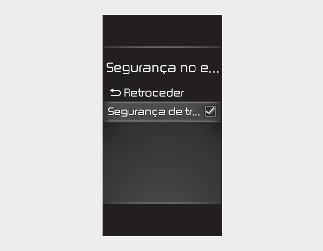 Com o interruptor da ignição ou o botão ENGINE START/STOP (Ligar/desligar o motor) na posição ON (Ligado), selecione “Driver Assistance (Assistência ao condutor) → Parking Safety (Segurança no estacionamento) → Rear Cross-Traffic Safety (Segurança de tráfego cruzado à retaguarda)” no menu “Settings” (Definições) para ativar a Segurança de tráfego cruzado à retaguarda e desmarque para desativar a função.