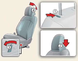 If you recline the seatback towards the front with the headrest and seat cushion raised, the headrest may come in contact with the sun visor or other parts of the vehicle.