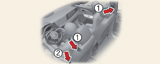 The seat belt pre-tensioner system consists mainly of the following components. Their locations are shown in the illustration:
