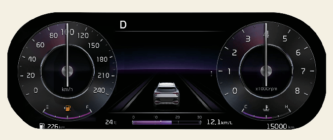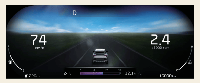 Type A is the basic theme of the full LCD type cluster and provides different graphic styles depending on drive mode.