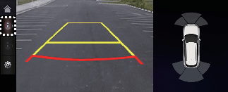 A função de panorâmica traseira prolongada mantem a vista traseira do veículo ao mudar a velocidade de R (Marcha-atrás) para N (Ponto morto) ou D (Condução) para o ajudar a estacionar em segurança.