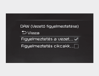 A motor ismételt indításakor a figyelmetlen vezetési figyelmeztető az utolsó beállításnak megfelelően indul el.