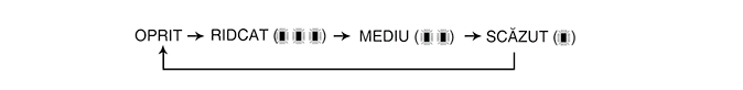 De fiecare dată când apăsați comutatorul, setările pentru temperatură ale scaunului se modifică după cum urmează: